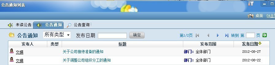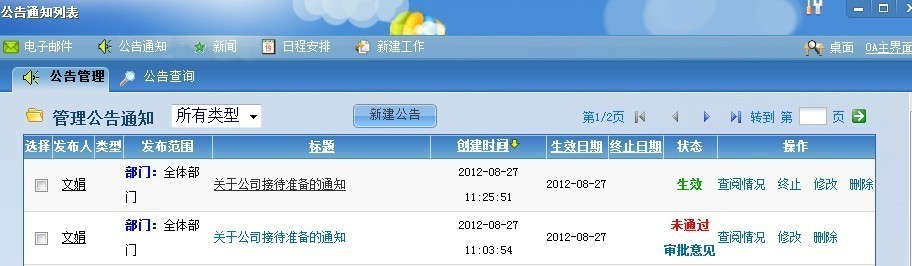 信息发布 通达OA的公告、新闻我们公司采用专人发布、专人审批,做到及时、实时的了解公司的最新公告及新闻,同时解决了出差的、分公司的、项目部的员工都能了解到公司的最新情况。也能让我们了解到有哪些员工及时的了解公司的情况,那些员工还没有了解公司的最新消息。