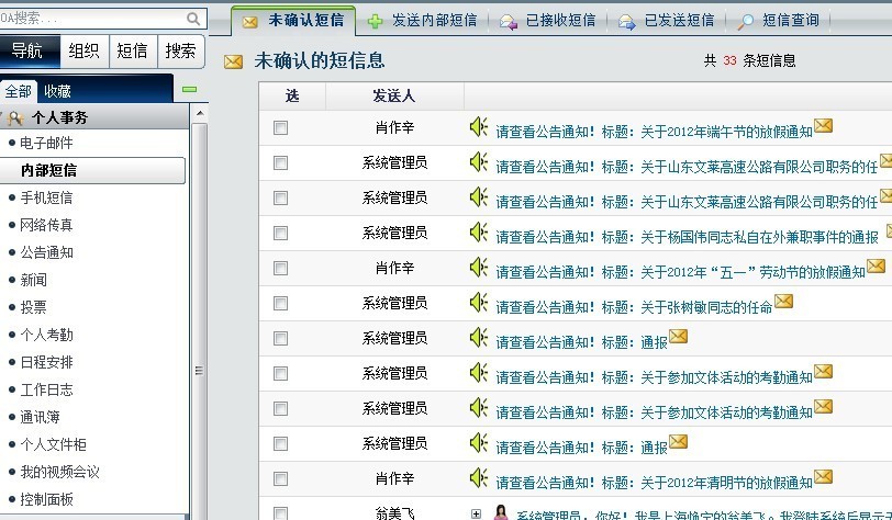 2、内部短信:员工可及时收取公司发布的最新消息,及员工之间的内部短信,可媲美腾讯qq