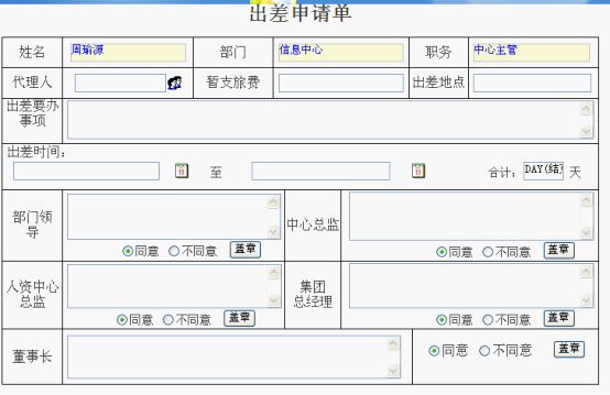2、出差申请流程 流程功能:规范出差制度和人事安排,形成固定流程; 流程流转说明:部门人员提出出差申请,经各级领导审批,最后反馈到部门申请人和相应部门存档备案; 使用范围:总部人员; 表单: